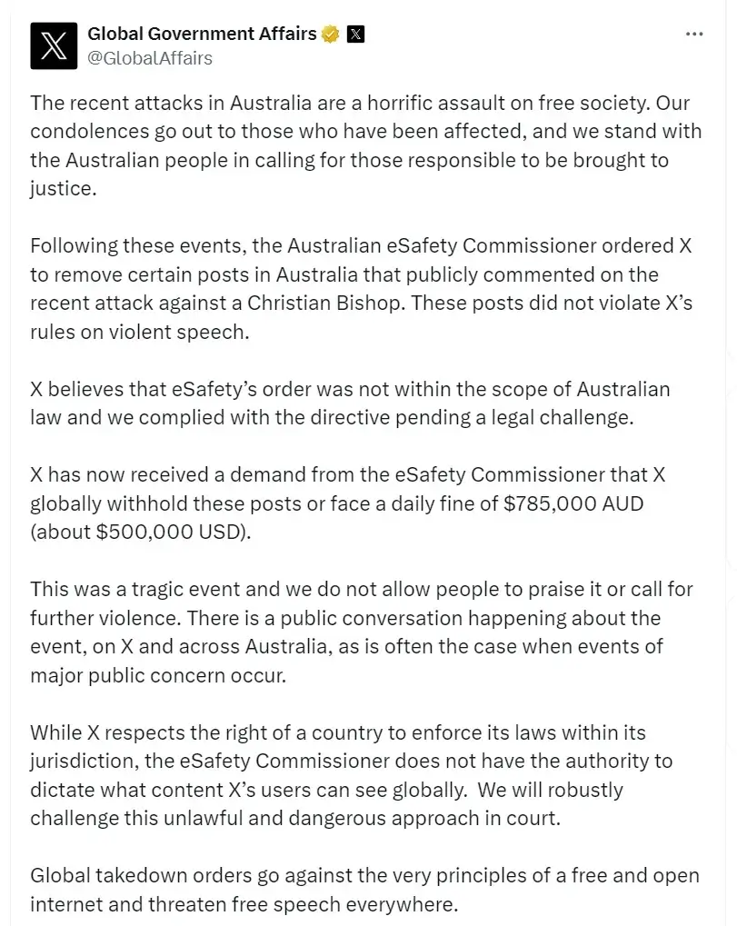 Portal X vel Twitter czeka kolejna wojna prawna. Tym razem z australijskimi urzędnikami, którzy chcą decydować o tym, co wolno publikować na Twitterze. Portal uważa, iż uzurpują sobie oni prawa, których nie mają, i zapowiada walkę.