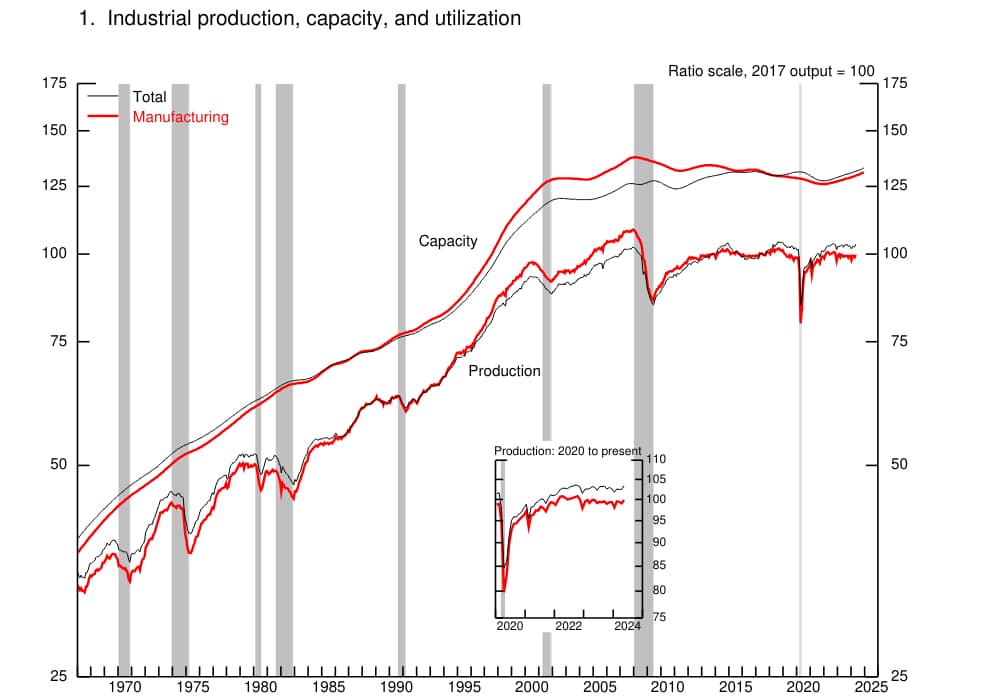 Produkcja przemysłowa w USA pozostaje historycznie wysoka ale utrzymuje się minimalnie poniżej poziomów sprzed pandemii. Źródło: US Census Bureau- Sprzedaż detaliczna wzrosła o 0,1% miesięcznie, podczas gdy oczekiwano 0,2% wzrosty wobec płaskiego odczytu poprzednio. Sprzedaż bez samochodów spadła o -0,1%, choć oczekiwano 0,2% wzrostu i poprzednio obserwowaliśmy odczyt na poziomie 0,2% dynamiki miesiąc, do miesiąca