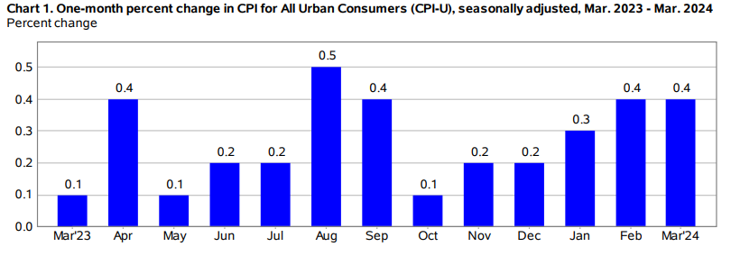 Dane o inflacji CPI z USA, za marzec zaskoczyły Wall Street i wskazały na silniejszy, od oczekiwano wzrost w głównym wskaźniku. Ryzykowne aktywa tracą po tym odczycie; rentowności amerykańskich obligacji rosną. Marzec był czwartym miesiącem z rzędu, w którym wskaźnik CPI był wyższy od oczekiwań. Szanse na szybkie luzowanie polityki monetarnej w USA spadły.