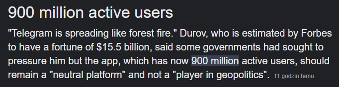 Patrząc w przyszłość, Durov odniósł się również do perspektyw wzrostu samej platformy Telegram, przewidując, iż jest ona na dobrej drodze do osiągnięcia miliarda aktywnych użytkowników miesięcznie w ciągu tylko następnego roku. Dużo? Przypomnijmy: na chwilę obecną komunikator ma według różnych startystyk ok. 900 milionów aktywnych kont, a choćby odejmując „aktywne” boty, przypuszcza się iż może to być przez cały czas kilkaset prawdziwych, żywych osób.