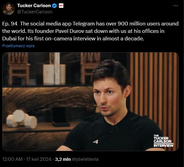 Podczas świeżego wywiadu z amerykańskim dziennikarzem Tuckerem Carlsonem, Pavel Durov, enigmatyczny założyciel giganta komunikacyjnego Telegram oraz łańcucha bloków TON (Telegram Open Netowrk), ujawnił, iż posiada setki milionów dolarów zarówno w walucie fiducjarnej, jak i krypto. Co konkretnie hodluje kontrowersyjny miliarder?