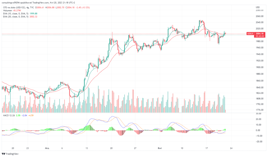 W zeszłym tygodniu cena złota wzrosła do 2050 USD za uncję po lepszych niż oczekiwano podstawowych danych CPI w USA. Metal szlachetny jak do tej pory znajdował solidne wsparcie w każdej wyprzedaży tuż poniżej poziomu 2000 USD. W chwili pisania tego tekstu czerwcowe kontrakty futures na złoto Comex kosztowały 2 017,90 USD, co oznacza wzrost o 0,53% w ciągu dnia.