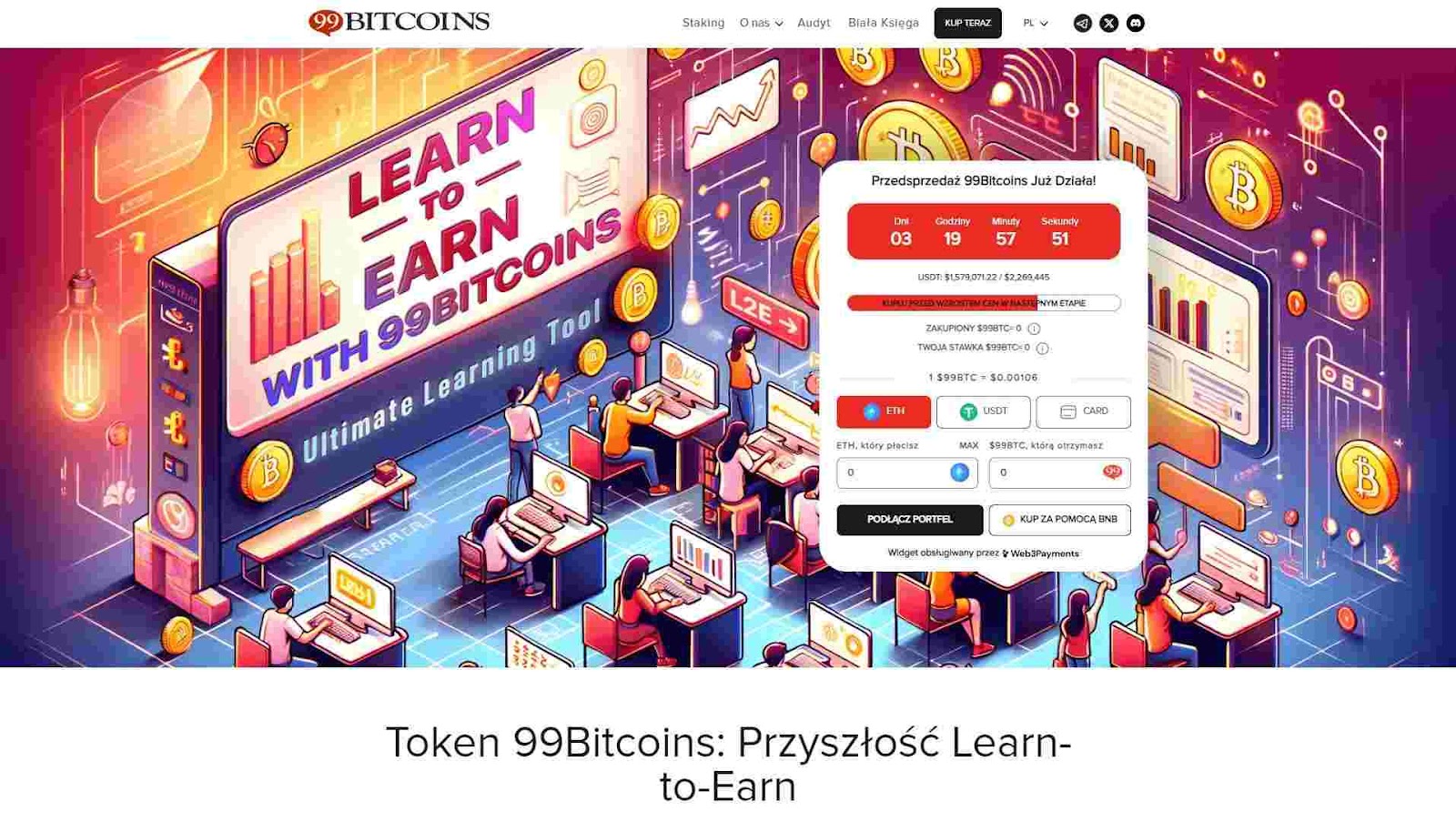 99 Bitcoins wykonał znaczący krok za sprawą integracji swojej platformy z technologią blockchain. Ewolucję tę reprezentuje wprowadzenie natywnego tokena, który znajduje się teraz w przedsprzedaży – 99BTC. Odegra on kluczową rolę w modelu learn-to-earn (L2E), który stanie się głównym mechanizmem platformy. Użytkownicy będą nagradzani tą kryptowalutą za swoje postępy w edukacji o rynku krypto.