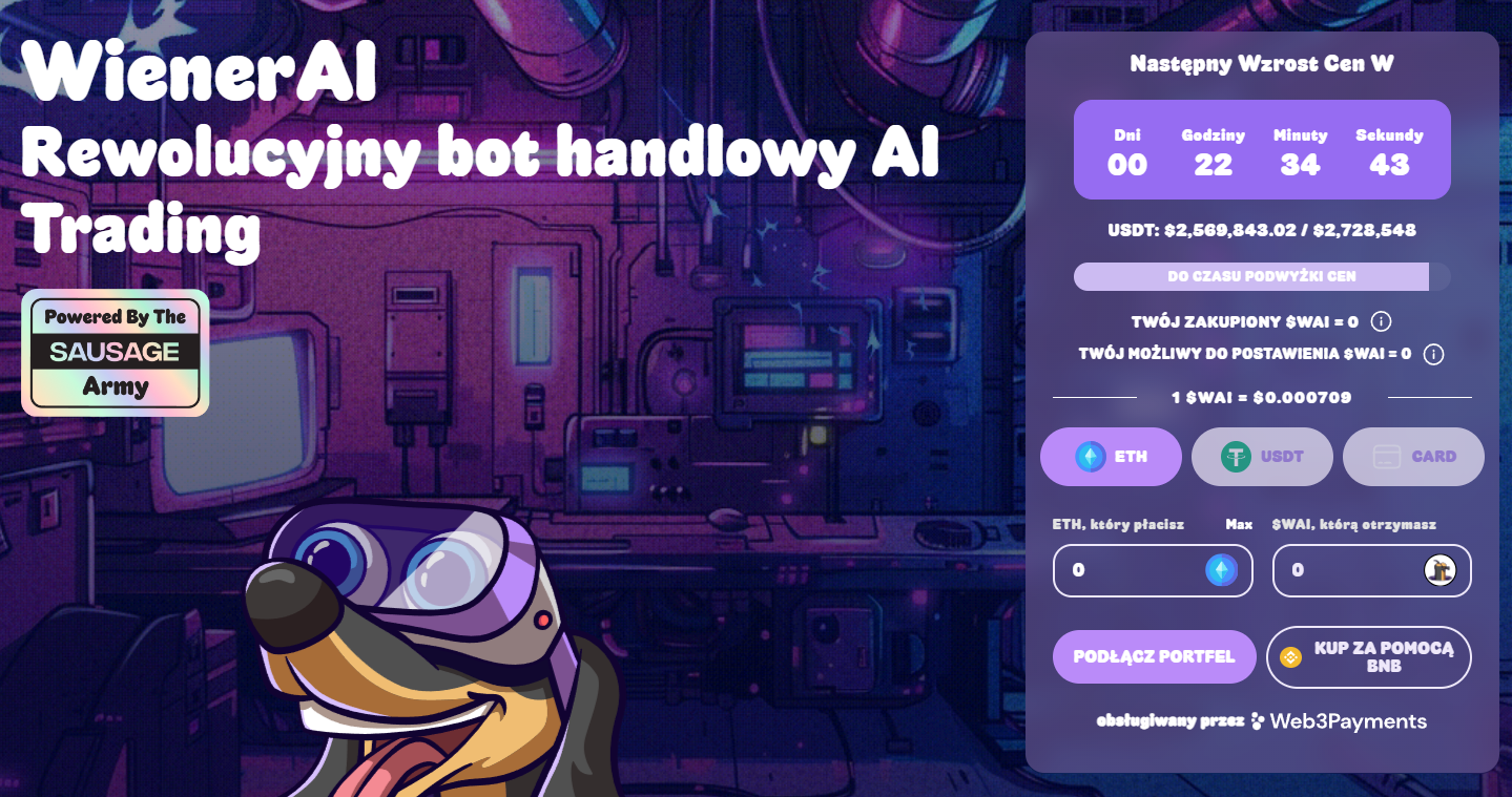 WienerAI, token memowy od blockchainu, znajduje się jeszcze w fazie przedsprzedaży. Obserwując ostatni wzrost wartości memecoinów – PEPE czy BONK – moneta ma szansę stać się kolejnym zyskownym altcoinem.