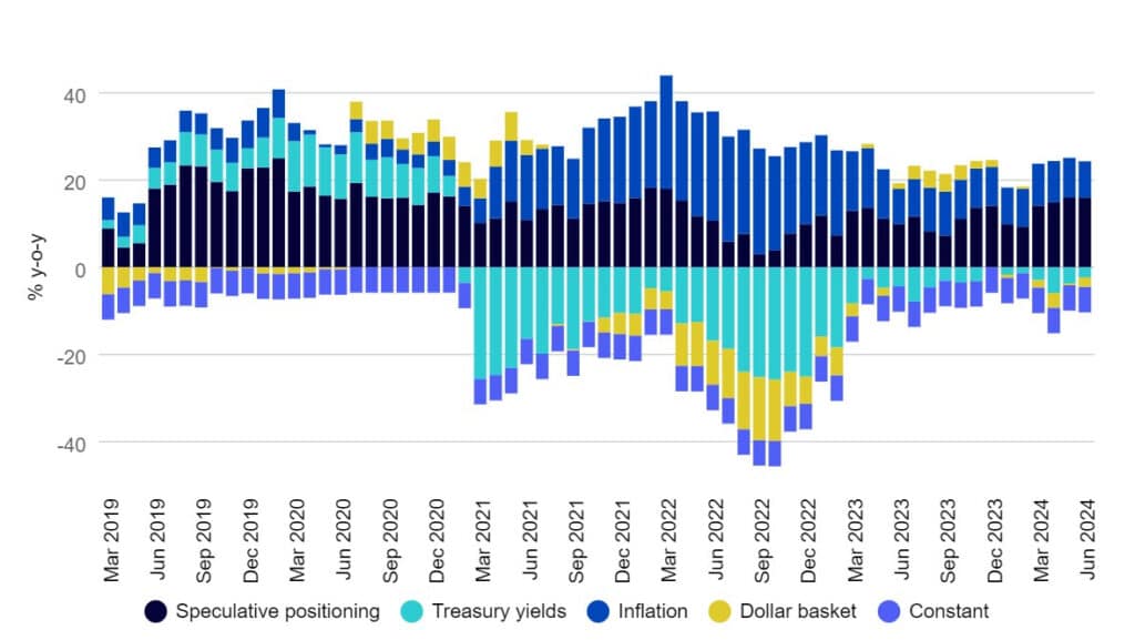Atrybucja ceny złota (źródło: WisdomTree)Złoto czeka na dobry moment?