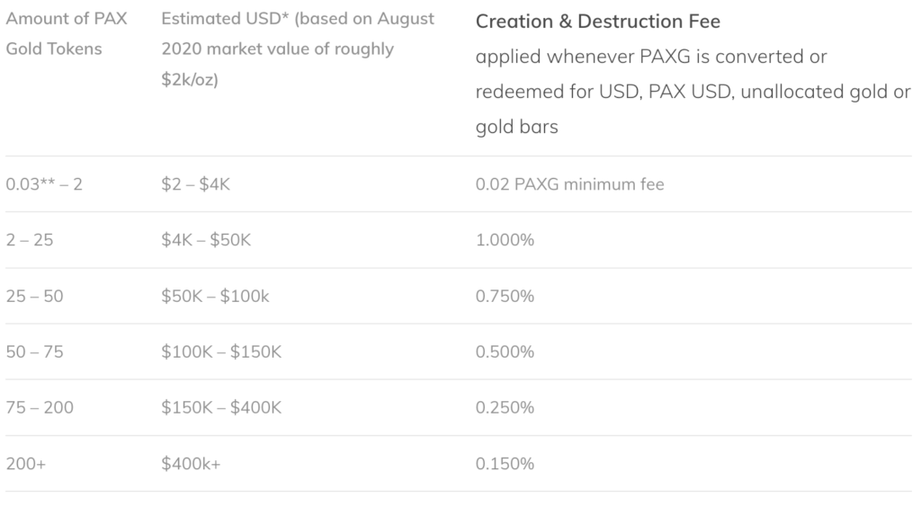 Ponadto występują prowizje za stworzenie bądź zniszczenie tokenu PAXG i wynoszą one: