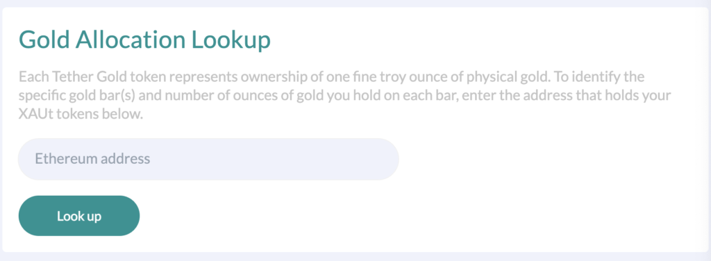 Tak samo jak w przypadku PAXG, tak też w XAUT w każdym momencie możemy sprawdzić, które sztabki złota posiadamy, gdy wpiszemy swój adres Ethereum na stronie platformy.