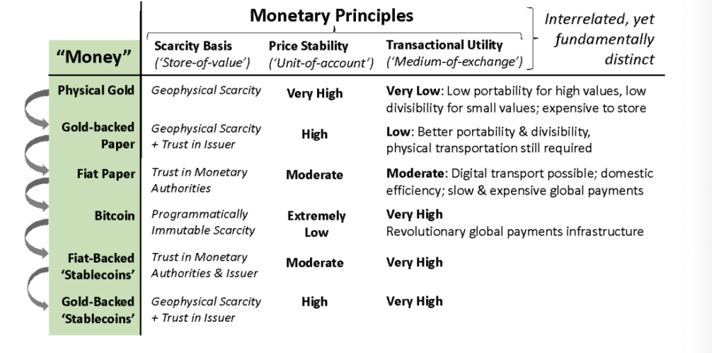 Pomimo porzucenia standardu złota przez państwa idea, by wiązać pieniądze z czymś wartościowym przetrwała. Dzięki innowacji technologicznej w postaci sieci blockchain i adaptacji Bitcoina przez szerokie masy jesteśmy dziś w miejscu, które pozwala nam na dalszą ewolucję pieniądza i powrót do parytetu złota, tym razem nie w oparciu o fizyczne złoto, a oparte o nie stablecoiny.