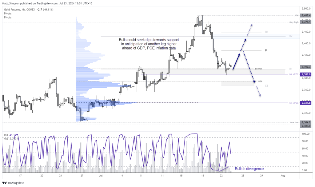 źródło: TradingViewJedną z sił napędowych zainteresowania złotem, pomimo hossy na giełdach, są nastroje inwestorów. Adatia uważa, iż jest to prawdopodobnie najmniej lubiana hossa, jaką kiedykolwiek widzieliśmy. Dzieje się tak ze względu na skoncentrowaną dynamikę nazw napędzających amerykańskie akcje.
