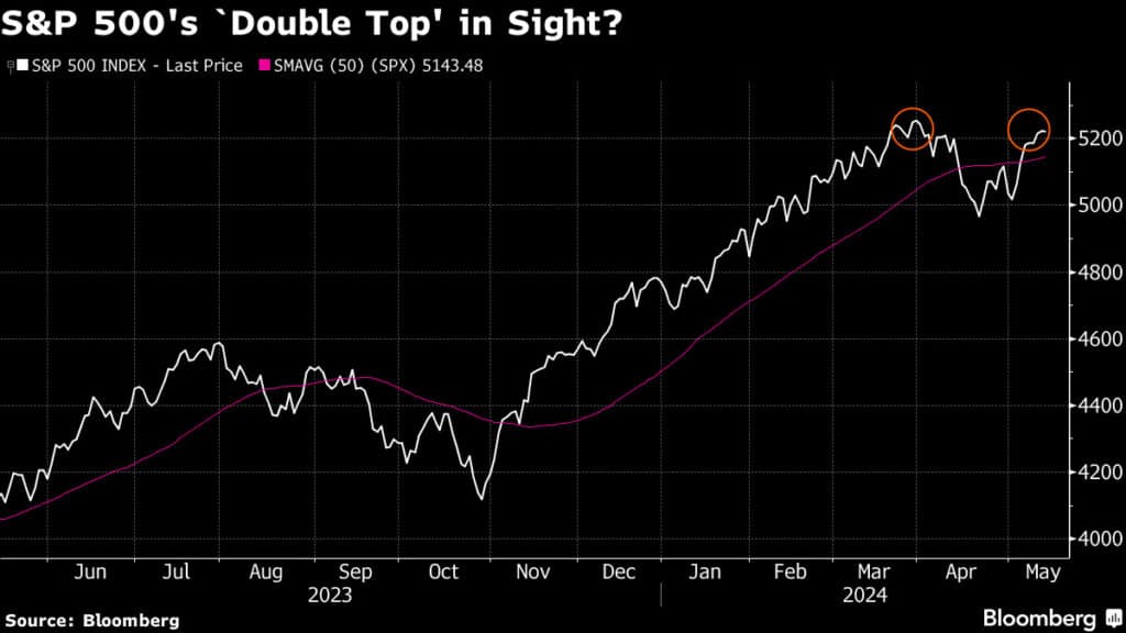 Wykres notowań indeksu S&P 500. Byki próbują bronić wzrostowego scenariusza i nie dają się przestraszyć potencjalnie 'podwójnym szczytem’. Źródło: BloombergCzym jest Hindenburg Omen?