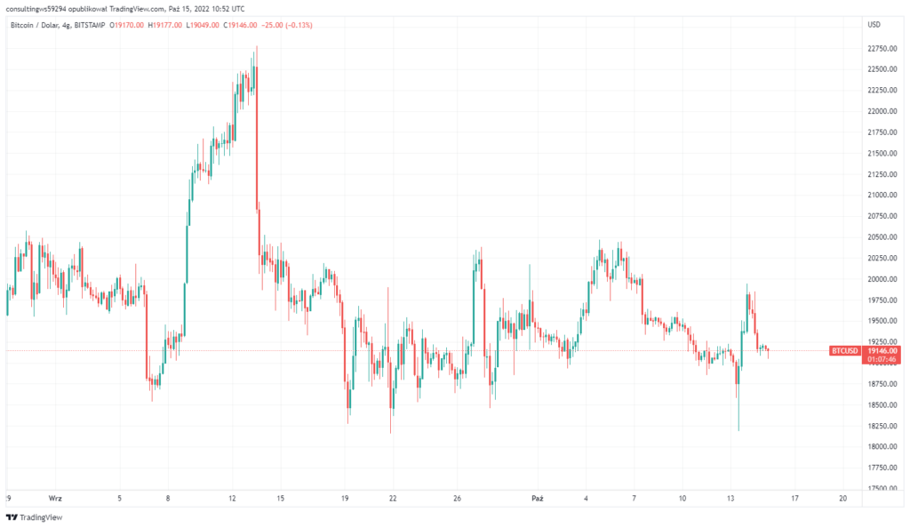 Dane z TradingView pokazują, iż cena Bitcoina (BTC) doświadczyła 10% wahań między czwartkiem a piątkiem, oscylując między najniższym poziomem 18 130 USD w czwartek w pobliżu południa, a najwyższą ceą 19 958 USD we wczesnym handlu w piątek, i od tego czasu spadła do wsparcia blisko 19 200 USD, co jest prawie dokładnie w połowie swojego miesięcznego zakresu handlowego.