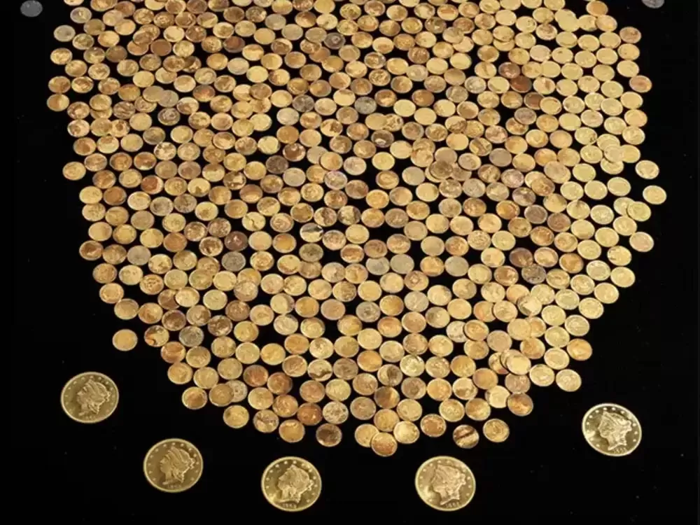 Szczęśliwiec, którego nazwisko pozostaje nieznane, wykopał ponad 700 złotych monet na początku 2023 roku. Jego odkrycie zawiera setki złotych monet dolarowych z lat 1854-1862, kolekcję najbardziej znanych podwójnych orłów z 1863 r., a także niewielką liczbę srebrnych monet. Co więcej, kolekcja zawiera też niezwykle rzadkie monety z mennicy Dahlonega.