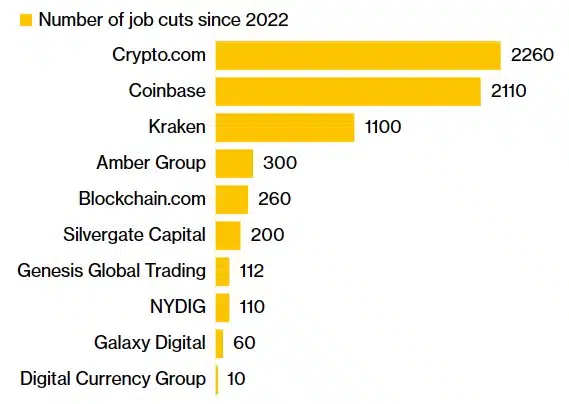 Według szacunków już ponad 7000 osób straciło pracę w firmach z branży kryptowalut w ciągu ostatniego roku. Dzieje się tak w obliczu trwającej od ubiegłego roku bessy, która nasiliła się pod koniec 2022 roku wraz z upadkiem FTX.
