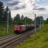 25.06.2025 Eurosprinter DB Cargo Deutschland - 189 001-1 ze składem platform i beczek relacji: Horka Gbf - Jaworzno Szczakowa, podąża szlakiem Chorzów Stary - Siemianowice Śląskie w kierunku Mysłowic