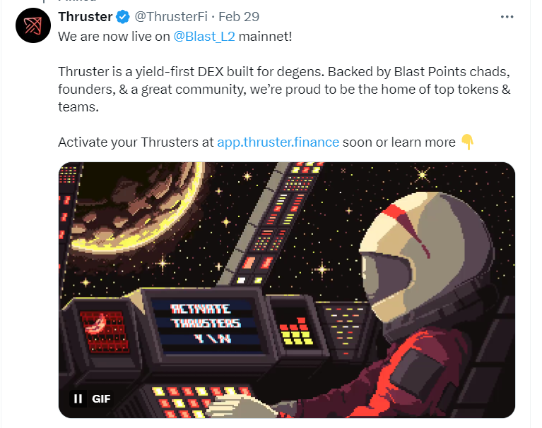 Dzięki tym wartościowym elementom oferty Thruster staje się domyślnym miejscem zapewniającym płynność i handel, zarówno w obrocie podstawowymi aktywami, jak i niszowymi tokenami w ekosystemie Blast.