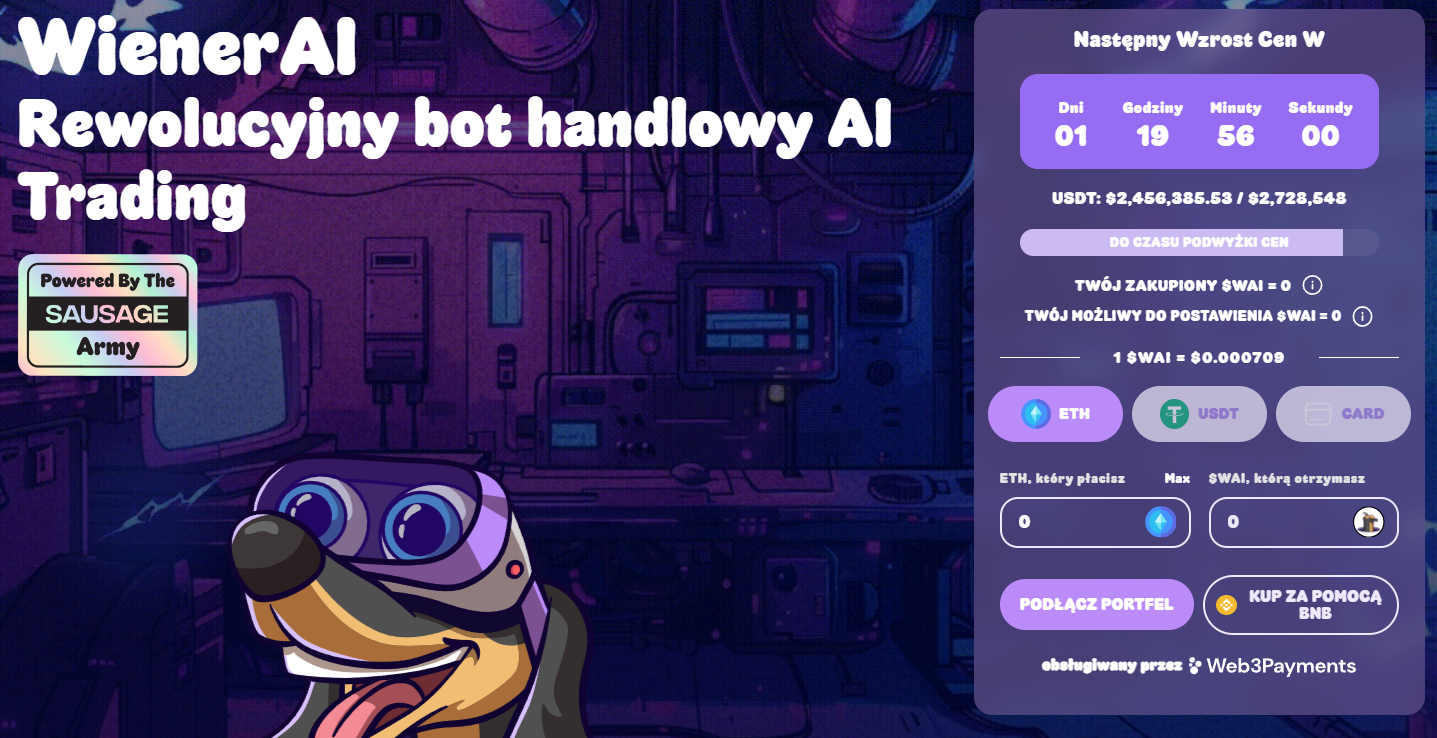 Twórcy projektu na blockchainie Ethereum zdecydowali się na wykorzystanie najnowszych osiągnięć sztucznej inteligencji, aby pomóc inwestorom w usprawnieniu ich działań. Głównym zamysłem zabawnego jamnika (ang. wiener dog) jest połączenie dynamicznie rozwijającej się technologii AI z tradingiem.