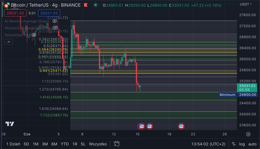 Najczarniejszym scenariuszem są oczywiście dalsze spadki i wędrówka ceny Bitcoina po nowe dołki w okolicach 12 000 dolarów. jeżeli opisywane dziś obszary nie utrzymałyby ceny Bitcoina w ryzach, to poniżej moglibyśmy wyznaczać kolejne strefy i klastry. Najbliżej byłoby chociażby kolejne 0.618 na 23800 dolarów, które klastrowałoby się z dużym 0.5 na 23200 dolarów. To kolejne 7% w dół.