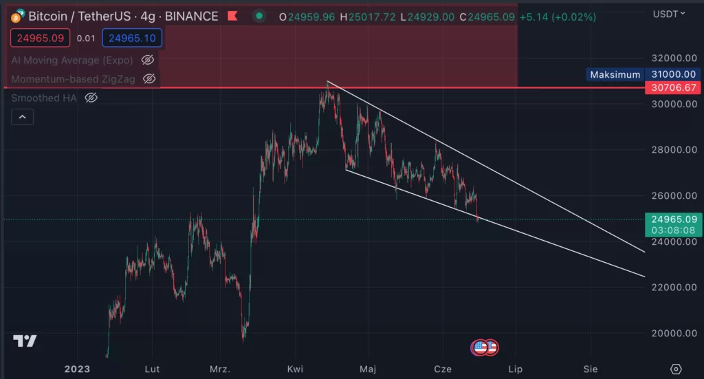 Bitcoin już od dwóch miesięcy znajduje się w korekcie, która przyszła po całym kwartale wzrostów. w tej chwili znajdujemy się w strefie, w której klastruje się wiele stref i mierzeń. Bitcoin formuje też byczą flagę/klin – analiza możliwych scenariuszy.