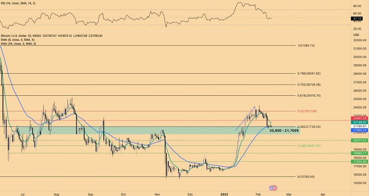 Szczyt obecnego zakresu znajduje się na poziomie zniesienia fib 0,382 i jest zsynchronizowany z dziennym 34EMA, „który jak dotąd utrzymuje wsparcie”.