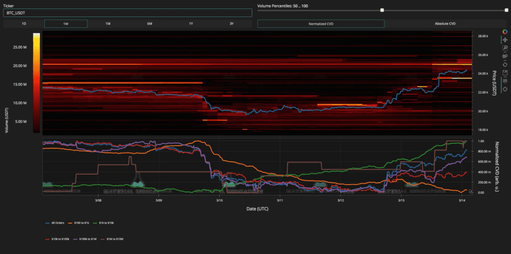 Towarzyszący wykres współzałożyciela Keitha Alana pokazał odpowiednio 23 600 USD i 25 000 USD jako główne obszary płynności kupna i sprzedaży.