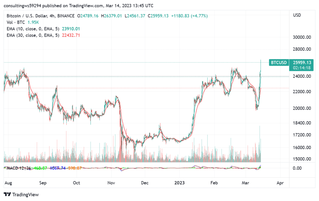 Para BTC/USD bardzo pozytywnie odniosła się do deklaracji Joe Bidena o pomocy sektorowi bankowemu. Rynek szukał pretekstu do wzrostów po ostatnich wydarzeniach z bankami, i go znalazł.