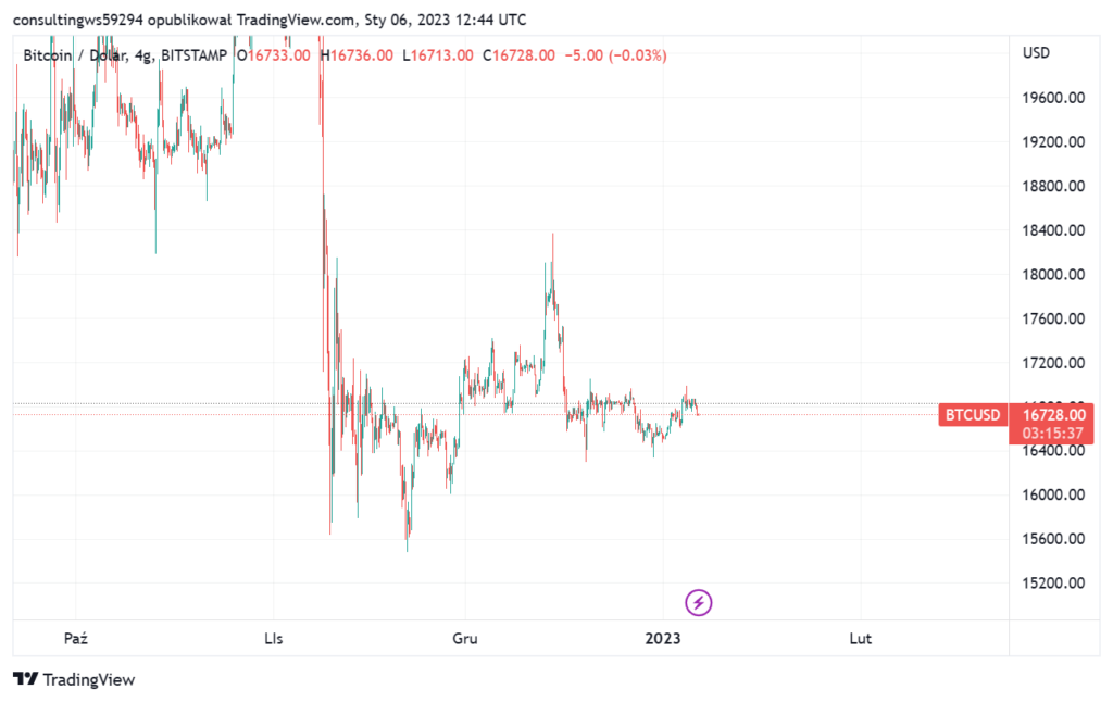 Bitcoin utrzymuje się powyżej 16 700 USD jednak pozytywne dane ekonomiczne wskazują na dalsze podwyżki stóp procentowych