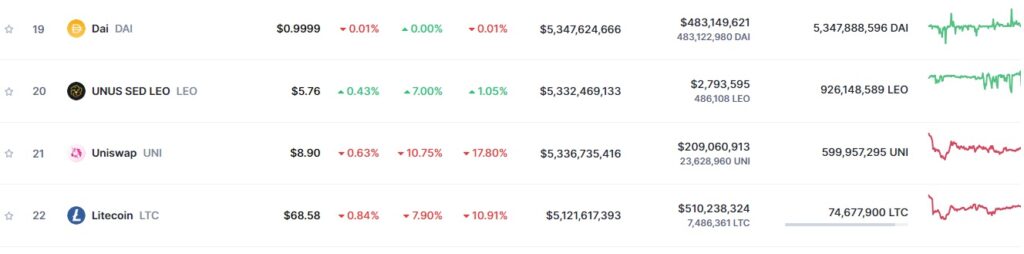 Wśród nielicznych altcoinów, które opierają się spadkowym ruchom na rynku kryptowalut, znajduje się UNUS SED LEO. W rankingu CoinMarketCUP token plasuje się na 20 miejscu.