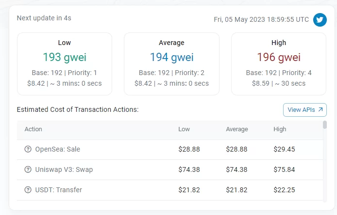 Ostro dopalana impreza na mem-coinach powoduje też szokujące jak na (oficjalnie trwający) rynek niedźwiedzia ceny gazu na sieci Ethereum. Zatwierdzanie czegokolwiek na platformie OpenSea będzie nas kosztowało średnio 30 dolarów, a zamiany tokenów na DEX-ie UniSwap aż…$75! Nic więc dziwnego, iż coraz więcej drobnych portfeli uaktywnia się na Solanie.