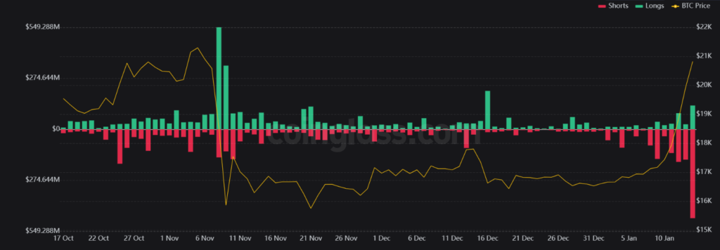 Spekulanci uwielbiający obstawianie krótkoterminowych, w gruncie rzeczy nieprzewidywalnych wahań cen rynku kryptowalut stracili łącznie około 721 mln USD, wyłącznie w ciągu 24 godzin między 13 a 14 stycznia. Według danych serwisu analitycznego Coinglass zlikwidowano łącznie ponad 132 000 traderów, przy czym największą likwidację stanowiła pozycja na spadki cen BTC, była warta ponad 6,8 mln USD. Co ciekawe, podczas gdy w ciągu ostatnich dni miało miejsce mnóstwo zakupów BTC po cenie spot, wolumen Bitcoina opuszczającego scentralizowane giełdy osiągnął najwyższy poziom od początku roku co potencjalnie świadczy o powszechnym przekonaniu o trwałości rajdu wśród wielorybów (inaczej prawdopodobnie woleliby trzymać BTC na giełdzie). Czy świadczy to, iż to nie tylko chwilowa euforia?