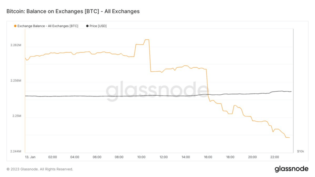 Większość zakupionych na giełdzie Bitcoinów została wycofana niemal natychmiast z giełd, 255 mln USD Bitcoinów zostało wycofane na prywatne portfele. Większość wypłat z giełd dokonywana była w dużych transzach, przewyższających 1 mln USD. Największą grupę stanowili inwestorzy wycofujące ponad 10 mln USD w BTC, co sugeruje działania instytucjonalne. Łączna wartość Bitcoinów trzymanych na giełdach spadła do zaledwie 2,24 mln BTC, 13 stycznia. 24 godzinny wolumen obrotu BTC wynisół ponad 45 mld dolarów.