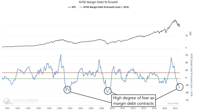 Źródło: Game of TradesObecny dług marżowy liczony ze skali % wzrostu w skali roku sygnalizuje utrzymujący się, wysoki stopień strachu na rynkach.
