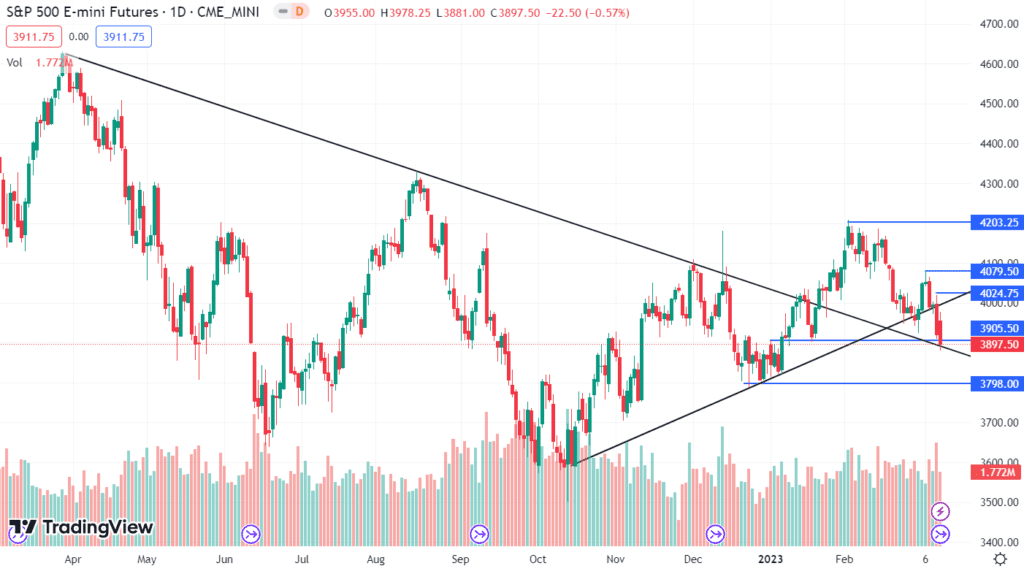 Dla byków kluczowa jest obrona górnego ograniczenia trendu spadkowego. Obrona tej linii neguje trend spadkowy i da bykom szansę na wyprowadzenie kolejnego impulsu wzrostowego. Minimalny zasięg takiego impulsu to linia trendu wzrostowego, przebitego przez niedźwiedzie na czwartkowej sesji. jeżeli bykom uda się przebić ten poziom oraz szczyt z 6 marca 2022 (4080 – 4082,5) pojawi się szansa na przetestowanie maksimum z 2 lutego (4200 – 4208,5). Scenariusz wzrostowy zostanie zanegowany w przypadku trwałego powrotu poniżej linii trendu spadkowego.