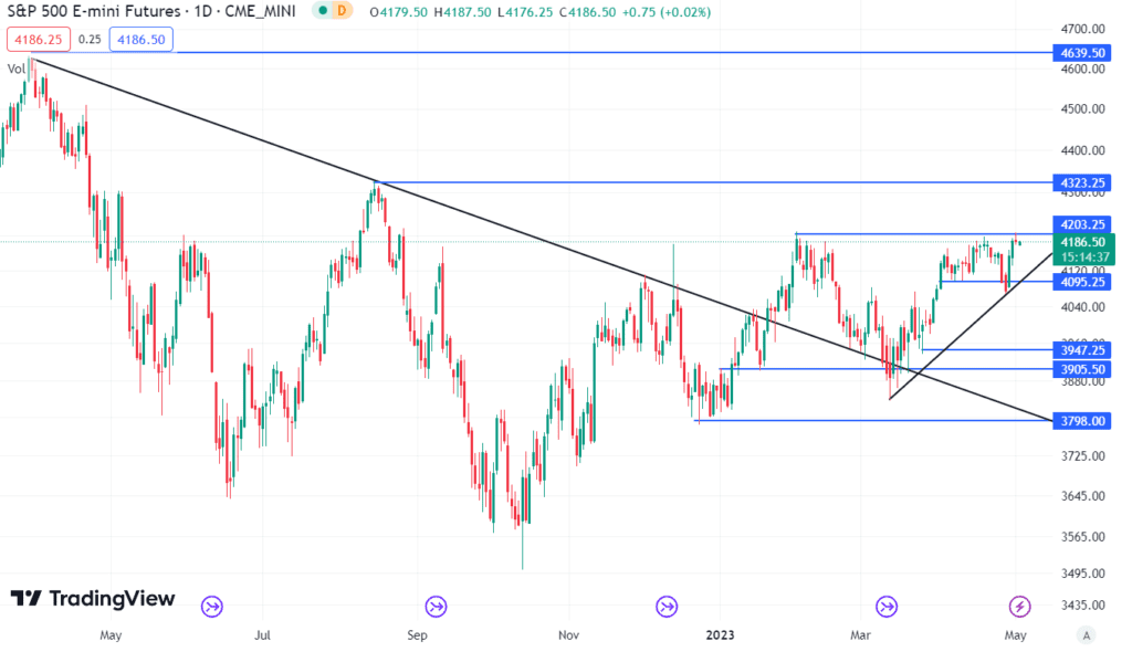 Od początku kwietnia indeks S&P 500 znajduje się blisko maksimum z 2 lutego 2023 roku (4 208 punktów). Na razie byki i niedźwiedzie okopali się na swoich pozycjach.