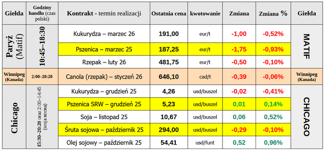 - Kukurydza: Minimalna różnica między starym a nowym zbiorem (zaledwie 3 EUR) potwierdza, iż rynek wierzy w globalną obfitość towaru.