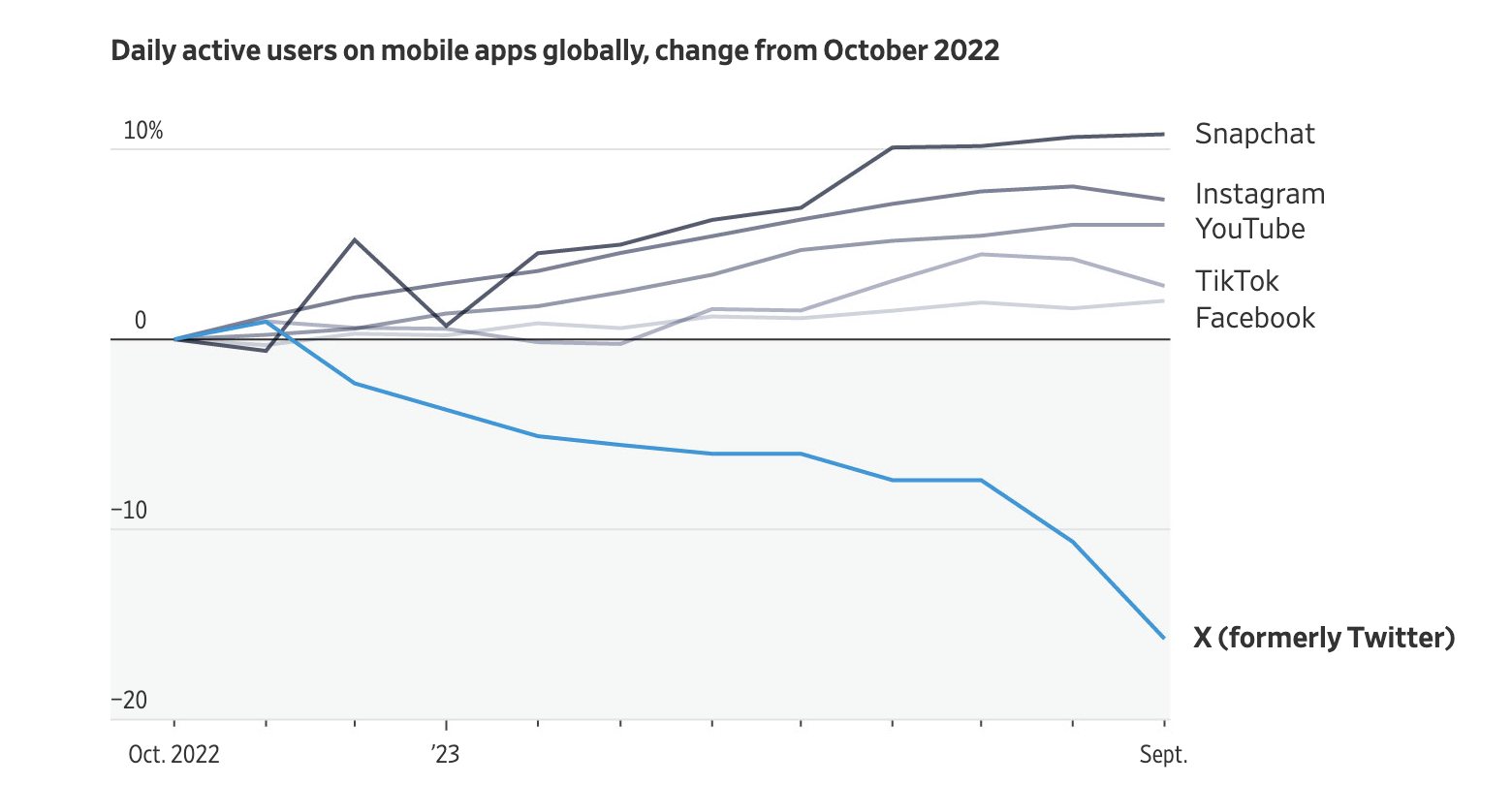 Musk podjął szereg kontrowersyjnych działań od przejęcia platformy, w tym zmianę jej nazwy na X, zmianę wielu zasad dotyczących treści i zwolnienie około 80% pracowników firmy. Szczególnie to ostatnie odbiło się dużym echem. Liczba codziennych aktywnych użytkowników na X spadła niemal o 20% w ostatnim roku. Niepopularne decyzje dotyczące platformy i pewne “szaleństwo” w działaniach miliardera, sprawiły, iż firma jest mniej popularna wśród reklamodawców. Elon przekazał parę miesięcy temu, iż X stracił około połowy swoich przychodów z reklam.