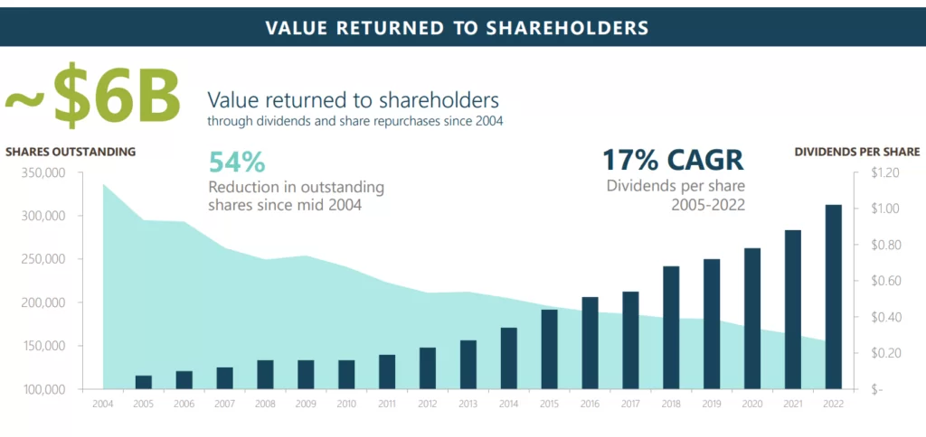 Źródło: SCIFirma generuje ogromne ilości gotówki, którą przeznacza na dalszą konsolidację, wypłatę dywidendy i skupy akcji. Dzięki temu wśród akcjonariuszy spółki najprawdopodobniej znajdą się też tacy, którzy inwestują w oparciu o strategię “dividend growth”.