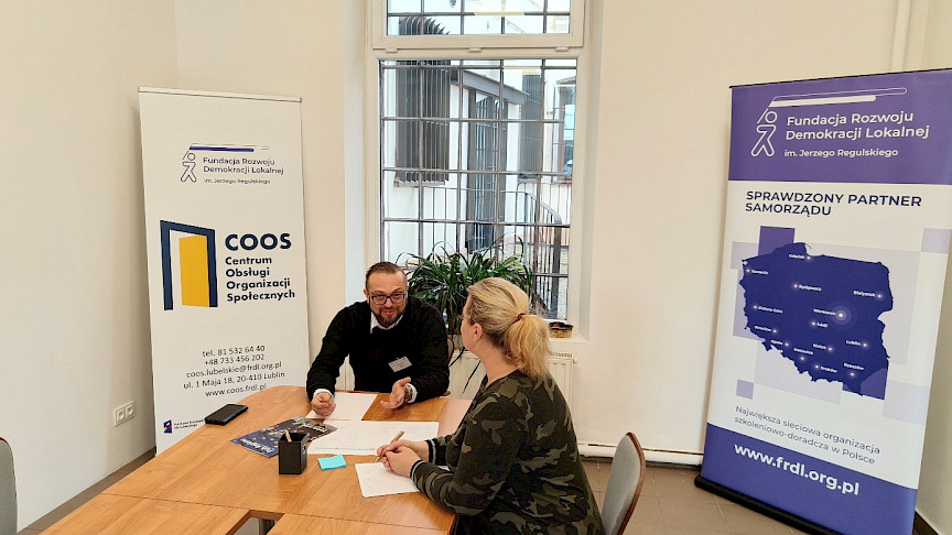 Centrum Obsługi Organizacji Społecznych (COOS) to nowa inicjatywa wspierająca organizacje społeczeństwa obywatelskiego i partnerów społecznych z terenu województwa lubelskiego. Od 22 września br. w siedzibie COOS przy u. 1 Maja 18 w Lublinie eksperci Fundacji Rozwoju Demokracji Lokalnej im. Jerzego Regulskiego, świadczą bezpłatne usługi w zakresie doradztwa i szkoleń skoncentrowanych na skutecznym aplikowaniu o środki unijne i efektywnym zarządzaniu organizacją.