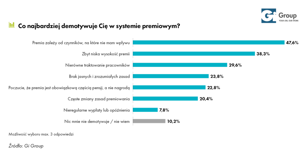 Z danych raportu Gi Group wynika, iż skuteczność premii jest silnie zróżnicowana. Zależy ona wyraźnie od cech demograficznych oraz poziomu wynagrodzenia. Wbrew założeniom wielu pracodawców badania pokazują, iż systemy premiowe nie stanowią jednoznacznie silnego impulsu do zwiększania zaangażowania.